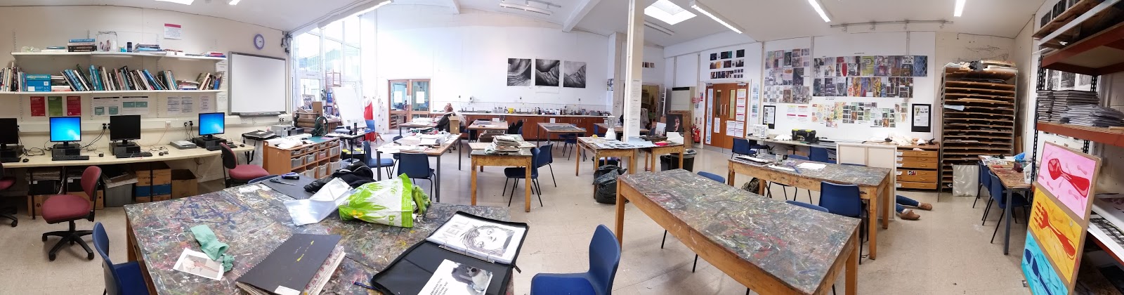 Walking into the building, the smell of paint and pencil lead filled my lungs and brought back memories of studying at Eccles College, which is where i went to visit Lisa Walker, head of the arts department at Eccles College and an old tutor of mine also, i went to Lisa because i know she regularly does portfolio workshop and critiques with her students so i thought it would be more beneficial to me, because she has lots of experience!